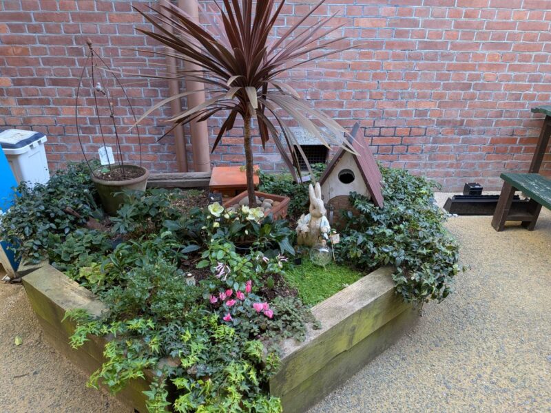 冬を越えた花壇は、手入れのおかげでとてもすっきり、美しく✨さらに、素敵なバラを2本いただき、1階ショップに飾っています🌹