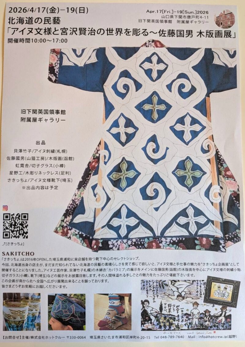 旧下関英国領事館の附属屋ギャラリーにて、北海道の素晴らしい民藝が集う催しが開催されます!