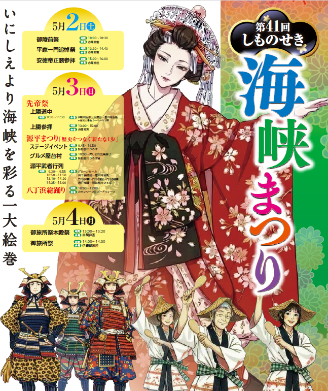また、ゴールデンウィーク期間中は、下関ICから唐戸周辺にかけての大変な混雑が予想されます。駐車場につきましても混雑が見込まれますので、お時間に余裕をもってお越しください。